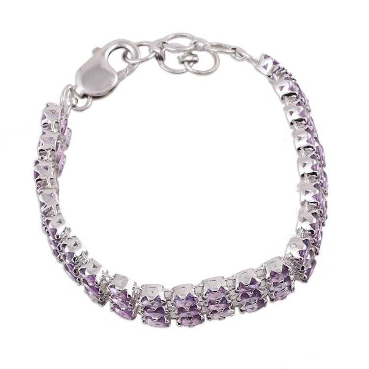 Amethyst and Rhodium Plated Silver Link Bracelet from India 'Lavender Sparkle' Item ID: 2671618894