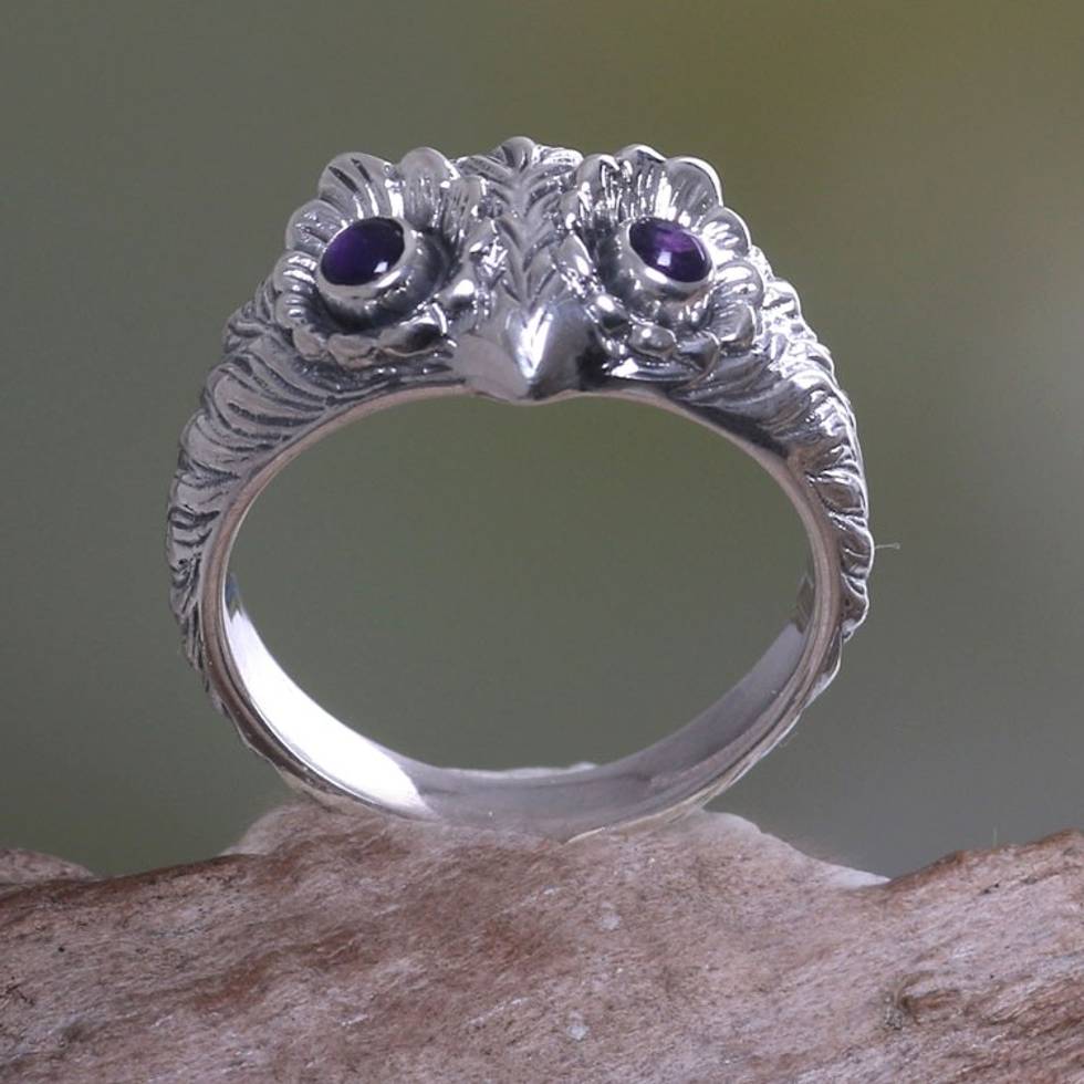 Amethyst and Silver Bird Ring 'Owl Wisdom' Item ID: 2669919828
