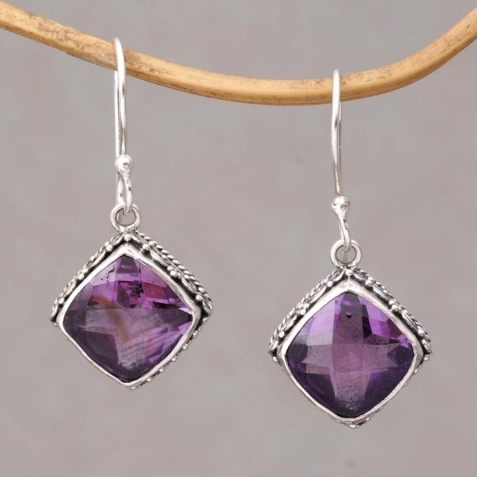 Amethyst and Silver Bubble Motif Dangle Earrings from BAli 'Eyes of Pura' Item ID: 2671733041