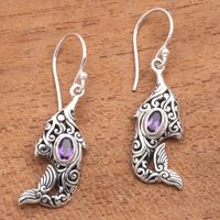 Amethyst and Sterling Silver Balinese Dolphin Earrings 'Purple Dolphin' Item ID: 2671744889