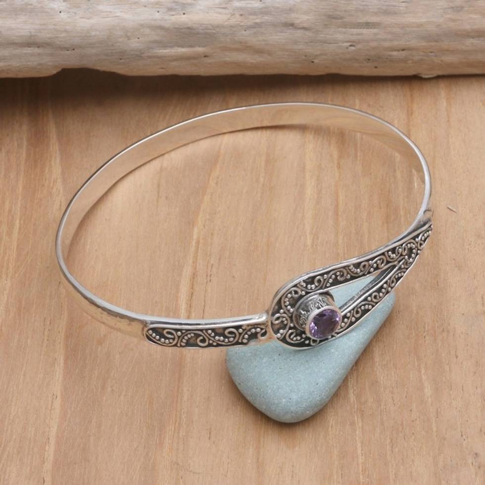 Amethyst and Sterling Silver Bangle Bracelet 'Magic Word' Item ID: 2671748160