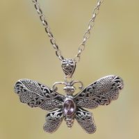 Amethyst and Sterling Silver Butterfly Pendant Necklace 'Elaborate Butterfly' Item ID: 2671735847