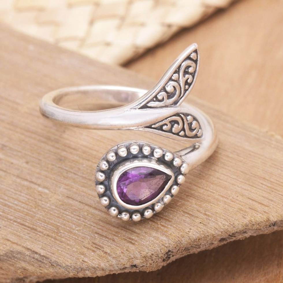 Amethyst and Sterling Silver Cocktail Ring Crafted in Bali 'Dolphin Tale in Purple' Item ID: 2671667554