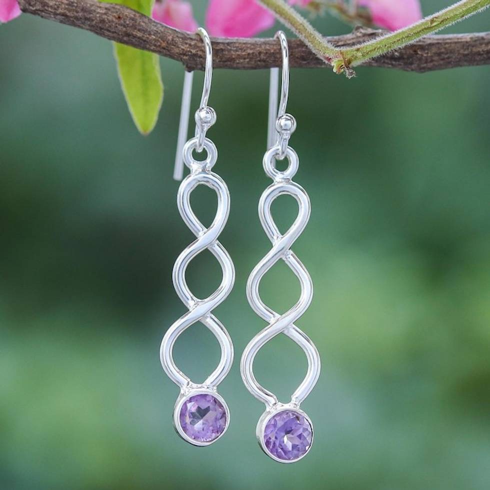 Amethyst and Sterling Silver Dangle Earrings 'Champagne Surprise in Purple' Item ID: 2671800243