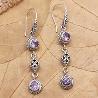 Amethyst and Sterling Silver Dangle Earrings 'Double Act in Purple' Item ID: 2671746701