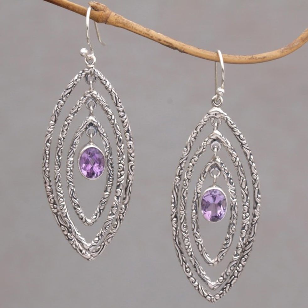 Amethyst and Sterling Silver Dangle Earrings from Bali 'Illusive Eyes' Item ID: 2669887196