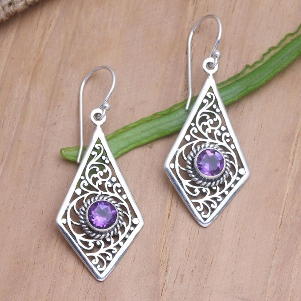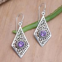 Amethyst and Sterling Silver Dangle Earrings from Bali 'Amethyst Swirls' Item ID: 2671747867