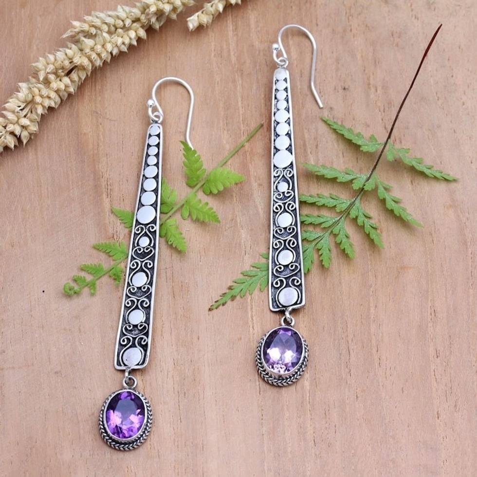 Amethyst and Sterling Silver Dangle Earrings from Bali 'Purple Snow' Item ID: 2671747599