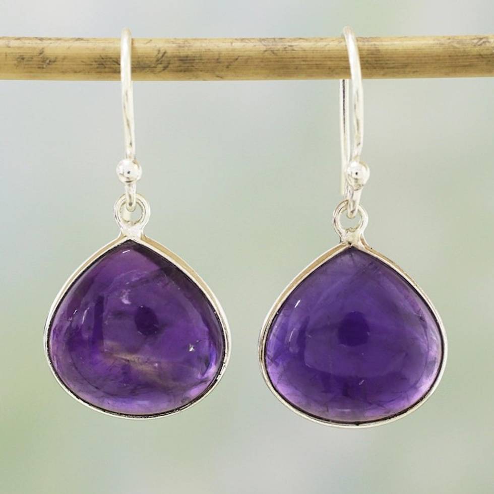 Amethyst and Sterling Silver Dangle Earrings from India 'Dancing Soul' Item ID: 2669924006