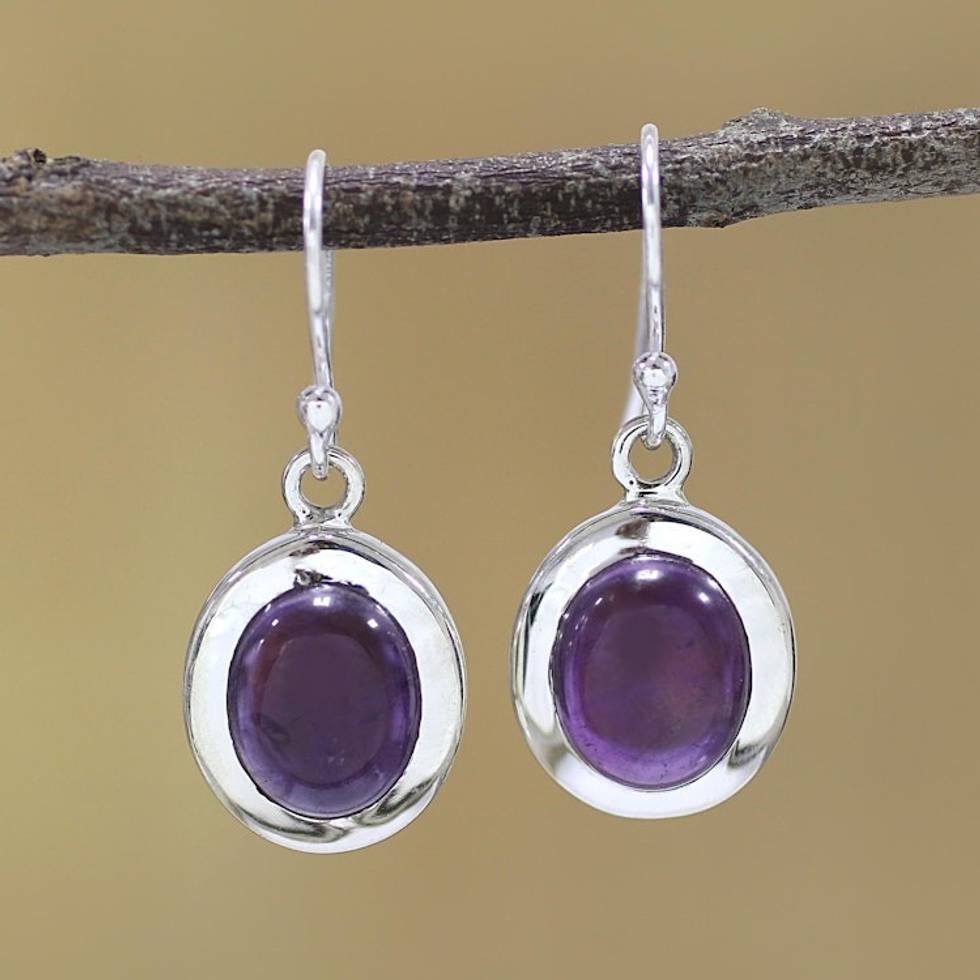 Amethyst and Sterling Silver Dangle Earrings from India 'Haloed Purple' Item ID: 2669924698