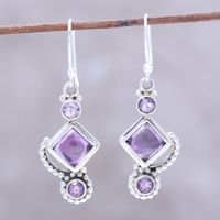 Amethyst and Sterling Silver Dangle Earrings from India 'Beauty of the Heavens' Item ID: 2671792071