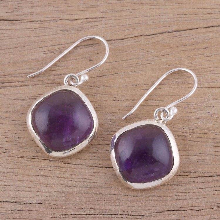 Amethyst and Sterling Silver Dangle Earrings from India 'Lavender Kite' Item ID: 2671790980