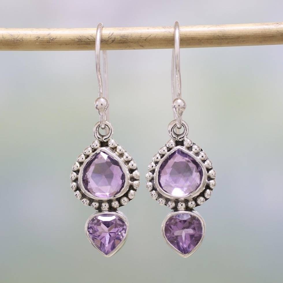 Amethyst and Sterling Silver Dangle Earrings from India 'Lovely Radiance' Item ID: 2671620325