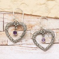 Amethyst and Sterling Silver Dangle Earrings from Indonesia 'Steal My Heart' Item ID: 2671702645