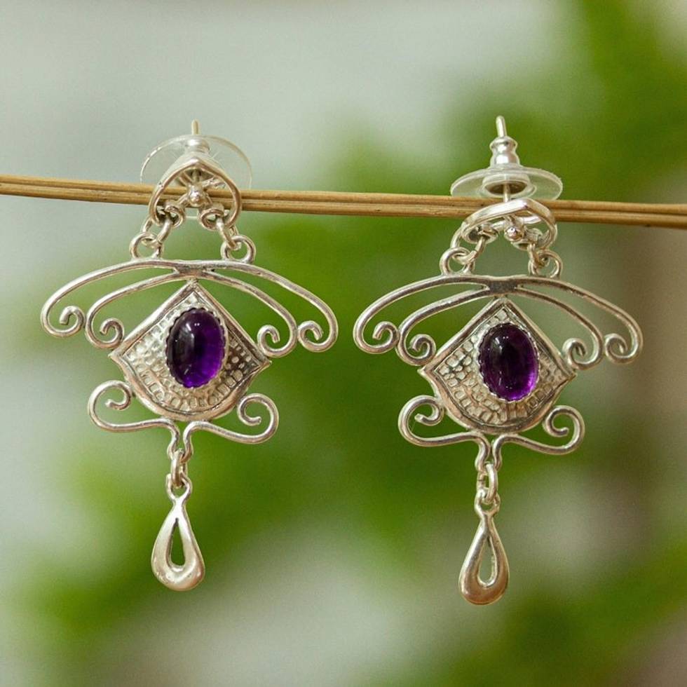 Amethyst and Sterling Silver Dangle Earrings from Mexico 'Wondrous Desire' Item ID: 2671807987