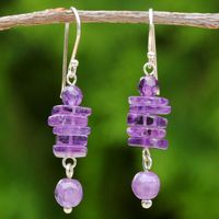 Amethyst and Sterling Silver Dangle Earrings from Thailand 'Purple Monoliths' Item ID: 2669927821