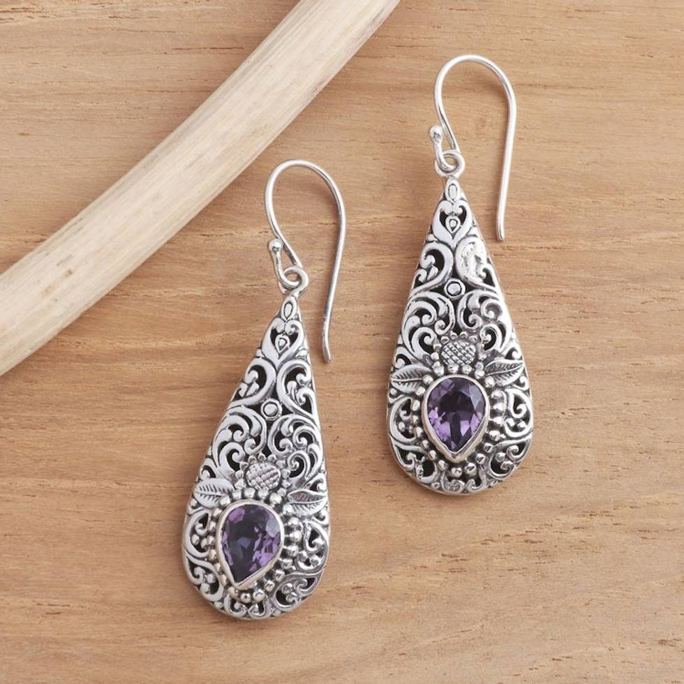 Amethyst and Sterling Silver Dangle Earrings 'Native Charm' Item ID: 2671744869