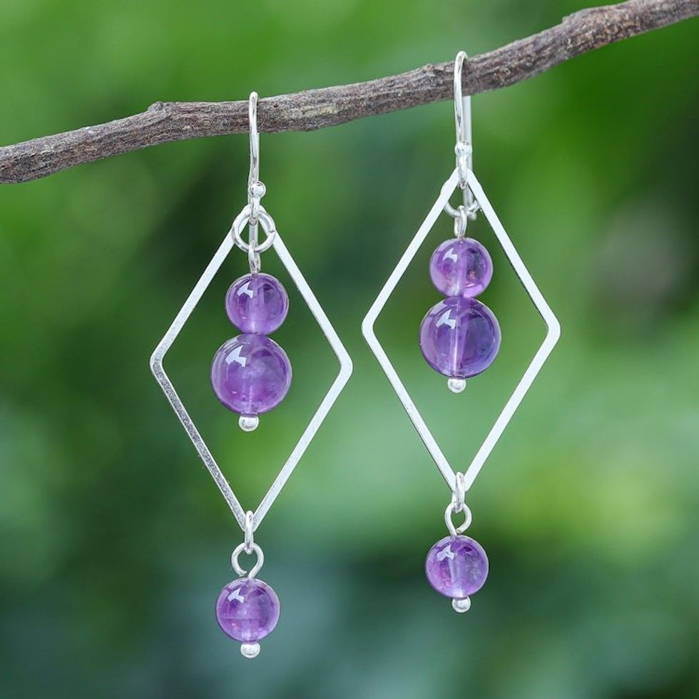 Amethyst and Sterling Silver Dangle Earrings 'Violet Star' Item ID: 2671799966