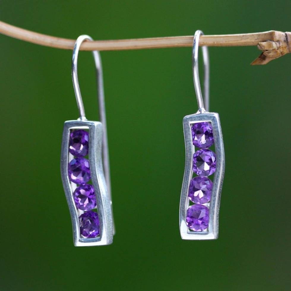 Amethyst and Sterling Silver Drop Earrings 'Ribbon' Item ID: 2671698604