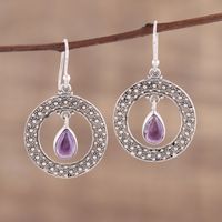 Amethyst and Sterling Silver Floral Motif Dangle Earrings 'Floral Loop in Purple' Item ID: 2671791079