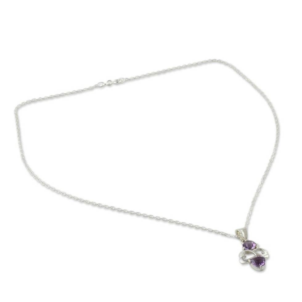 Amethyst and Sterling Silver Heart Necklace 'Spiritual Love' Item ID: 2671793737
