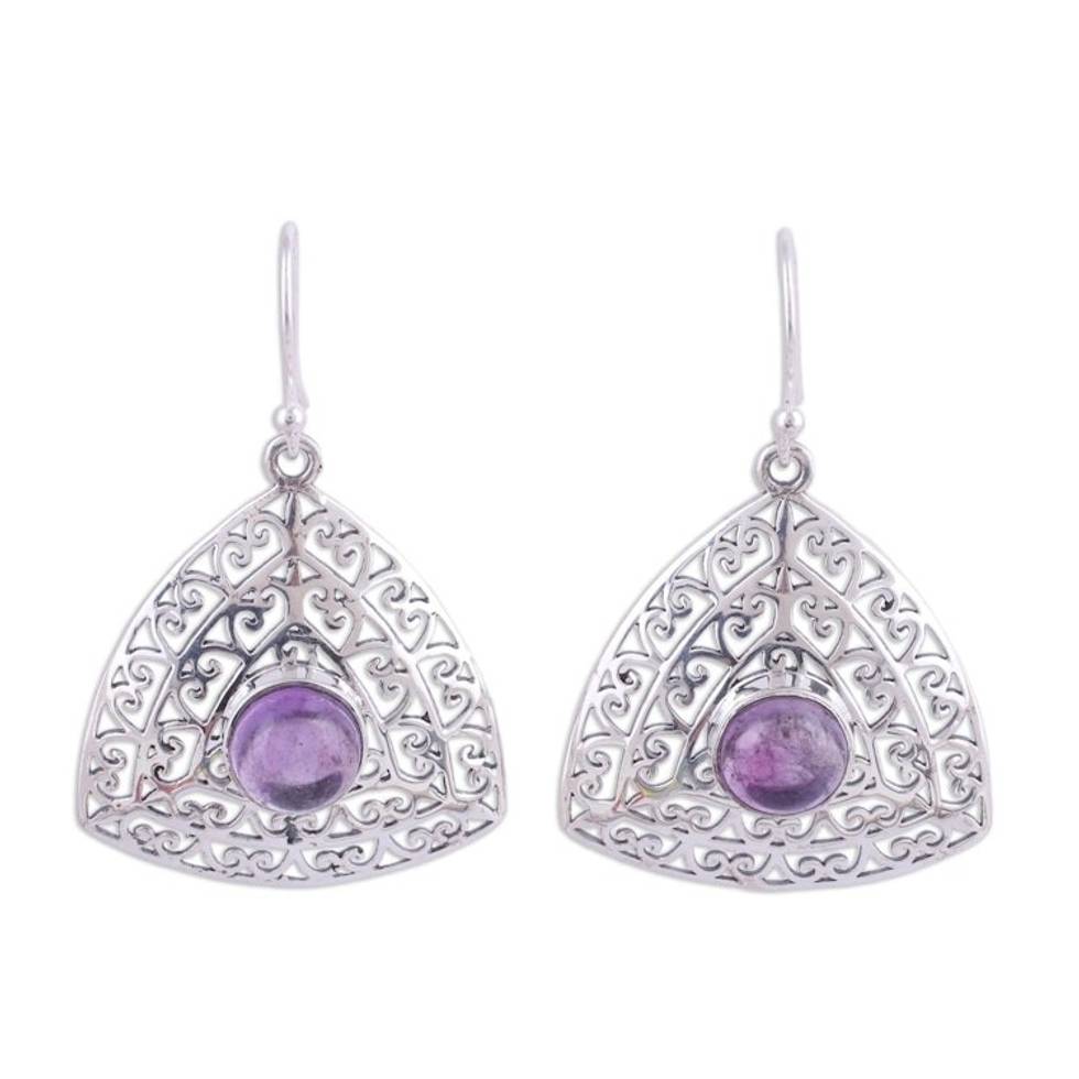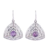 Amethyst and Sterling Silver Indian Jali Dangle Earrings 'Jali Frieze' Item ID: 2671791809