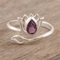 Amethyst and Sterling Silver Lotus Wrap Ring from India 'Lilac Lotus' Item ID: 2671787490