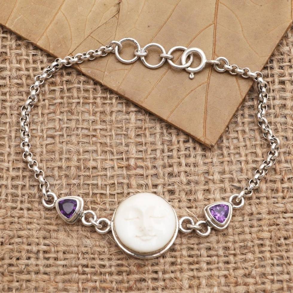 Amethyst and Sterling Silver Moon Bracelet 'Purple Moonlight' Item ID: 2671820910