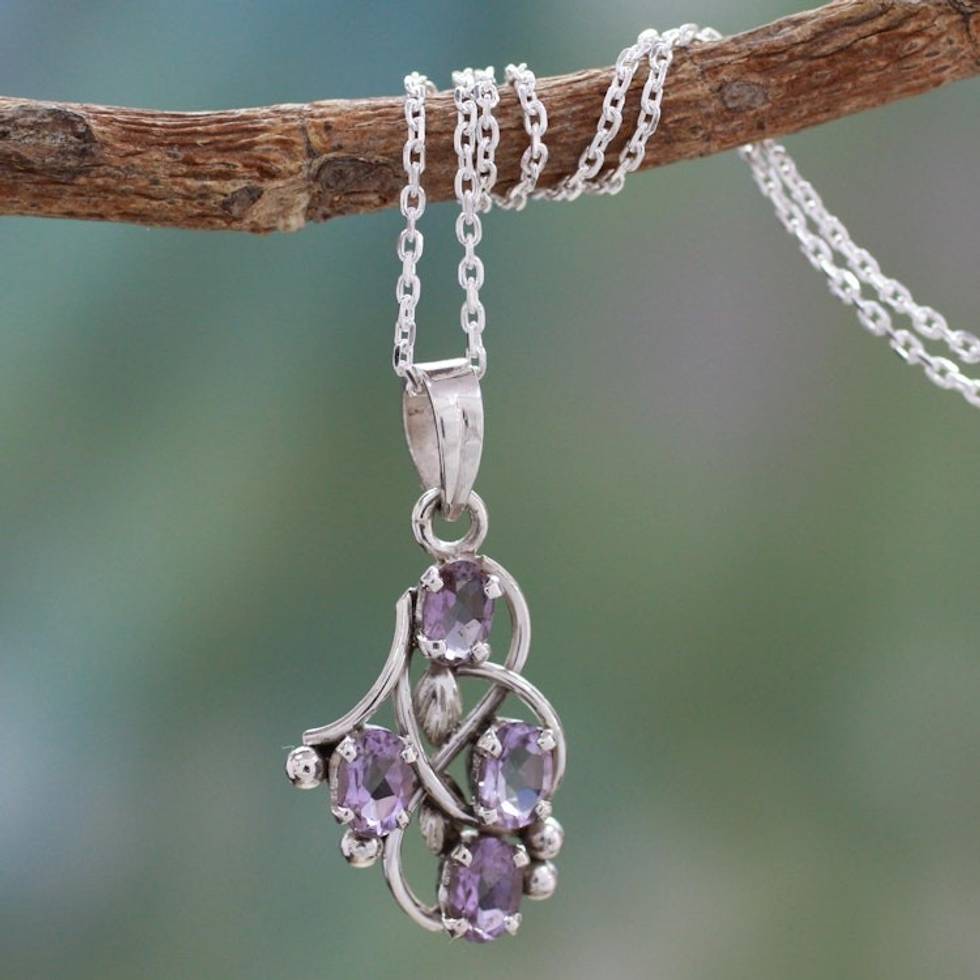 Amethyst and Sterling Silver Necklace India Jewelry 'Twirling' Item ID: 2669924260