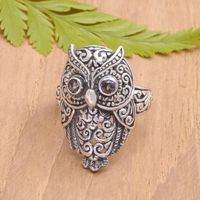 Amethyst and Sterling Silver Owl Cocktail Ring from Bali 'Purple Baby Owl' Item ID: 2670122339
