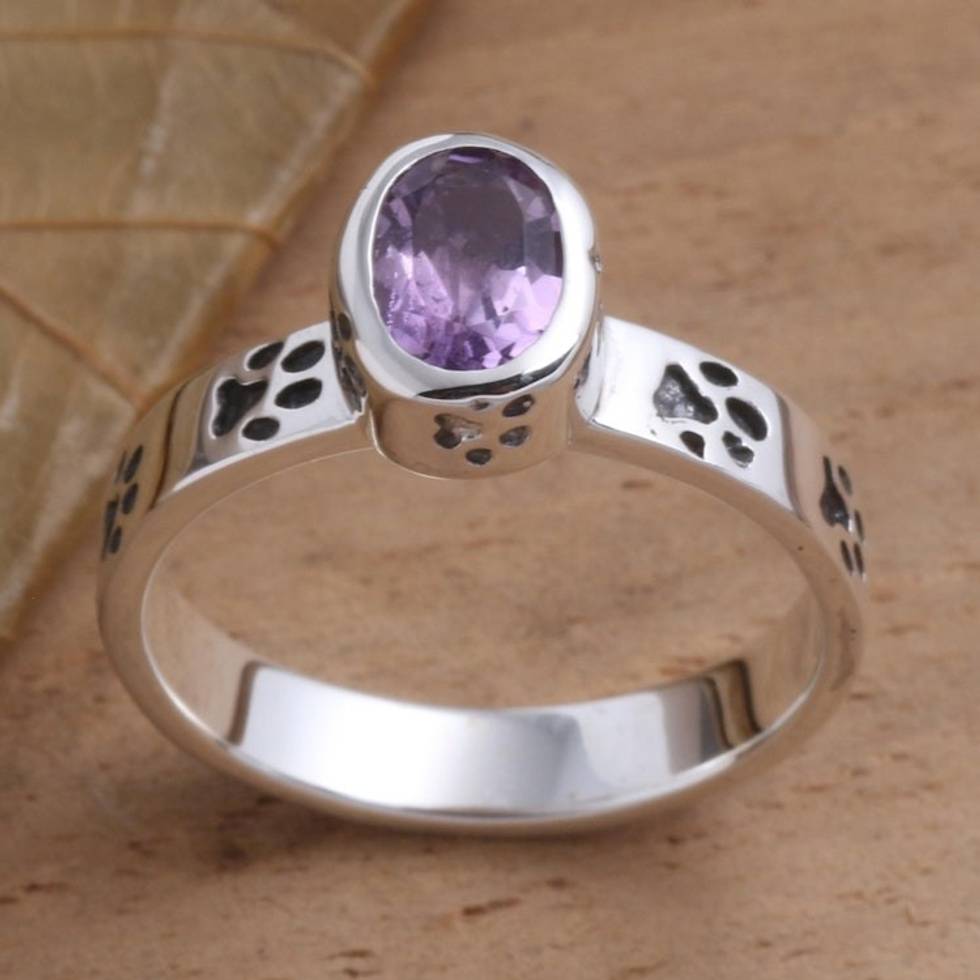 Amethyst and Sterling Silver Paw Print Ring 'Paw Prints in Purple' Item ID: 2671655768