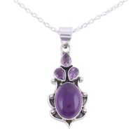 Amethyst and Sterling Silver Pendant Necklace from India 'Desirous Elegance' Item ID: 2671790843