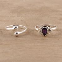 Amethyst and Sterling Silver Rings Crafted in India Pair 'Gemstone Radiance' Item ID: 2671792021
