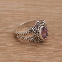 Amethyst and Sterling Silver Solitaire Ring from Bali 'Crown of Celuk' Item ID: 2676666845