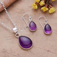 Amethyst Cabochon Pendant Necklace and Earrings Jewelry Set 'Blissful Amethyst' Item ID: 2671622273