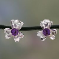 Amethyst Centered Floral Silver Earrings from India 'Cradle Lily' Item ID: 2671619162