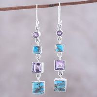 Amethyst Composite Turquoise Sterling Silver Dangle Earrings 'Tantalizing Tiers' Item ID: 2676664065