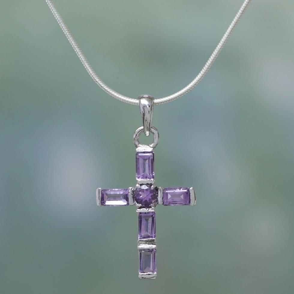 Amethyst Cross on Sterling Silver Necklace Religious Jewelry 'Lilac Cross' Item ID: 2671794899