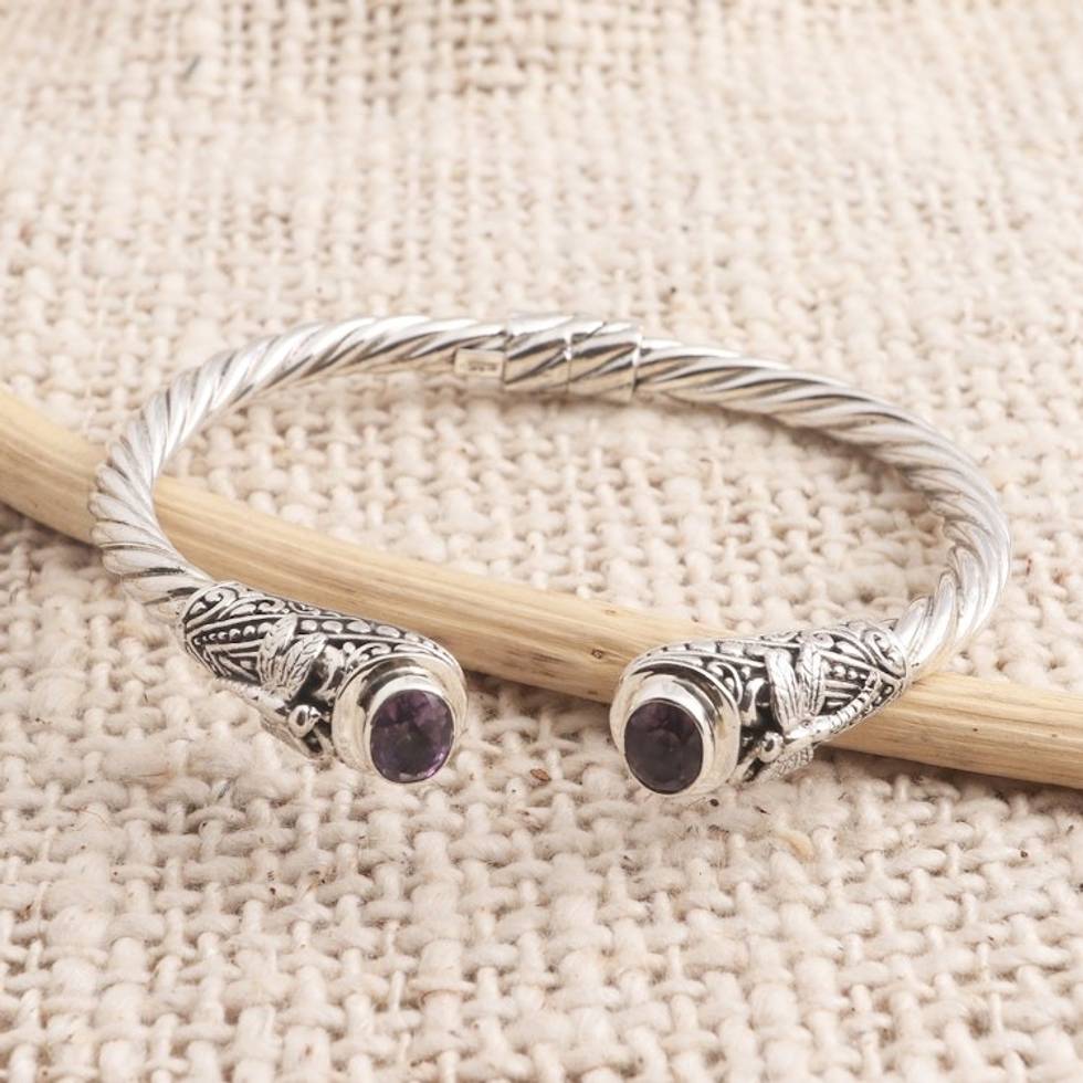 Amethyst Cuff Bracelet with Dragonfly Motif 'Perched Dragonfly' Item ID: 2671745004