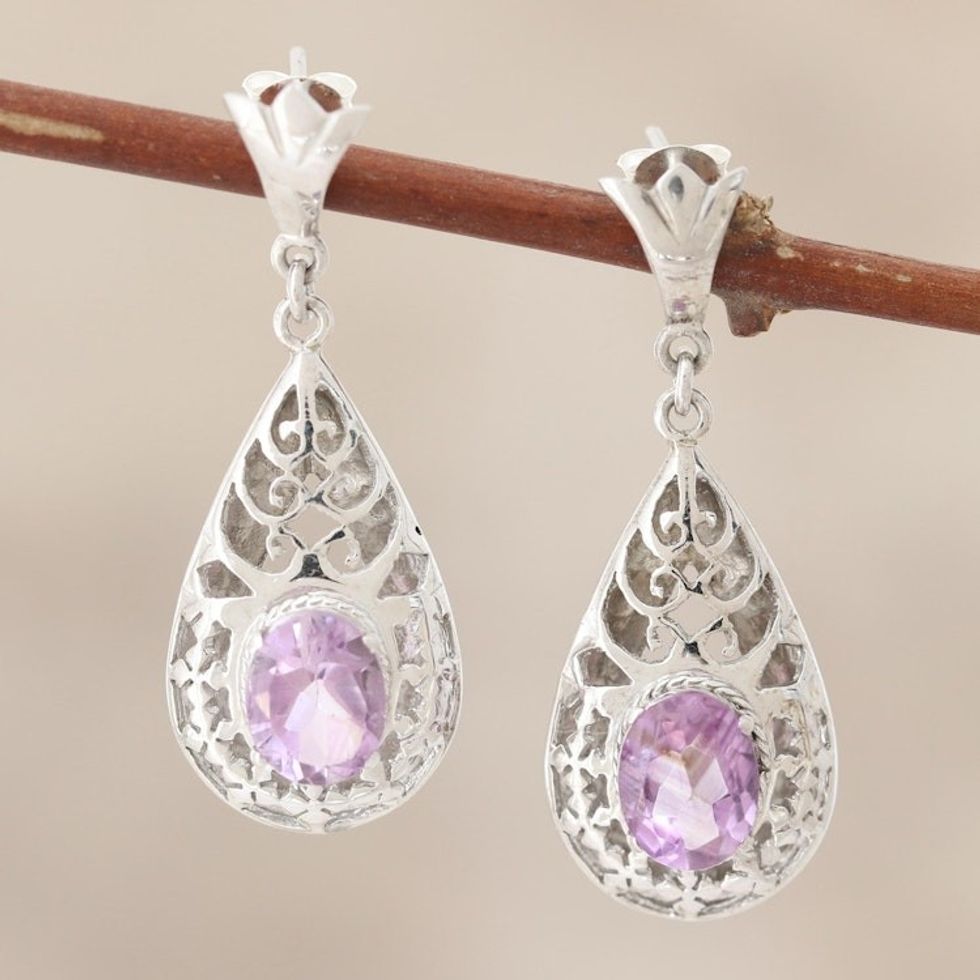 Amethyst dangle earrings 'Blessed Garden' Item ID: 2671794729