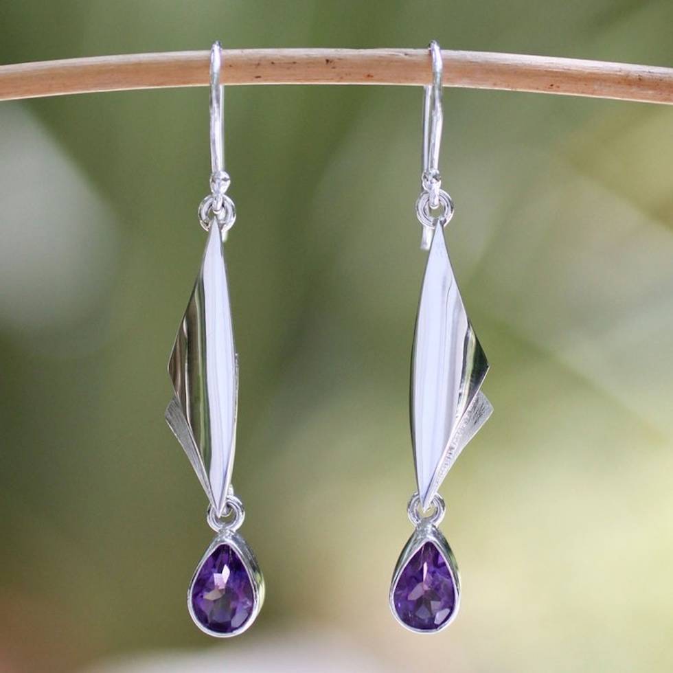 Amethyst dangle earrings 'On Silver Wings' Item ID: 2671809070