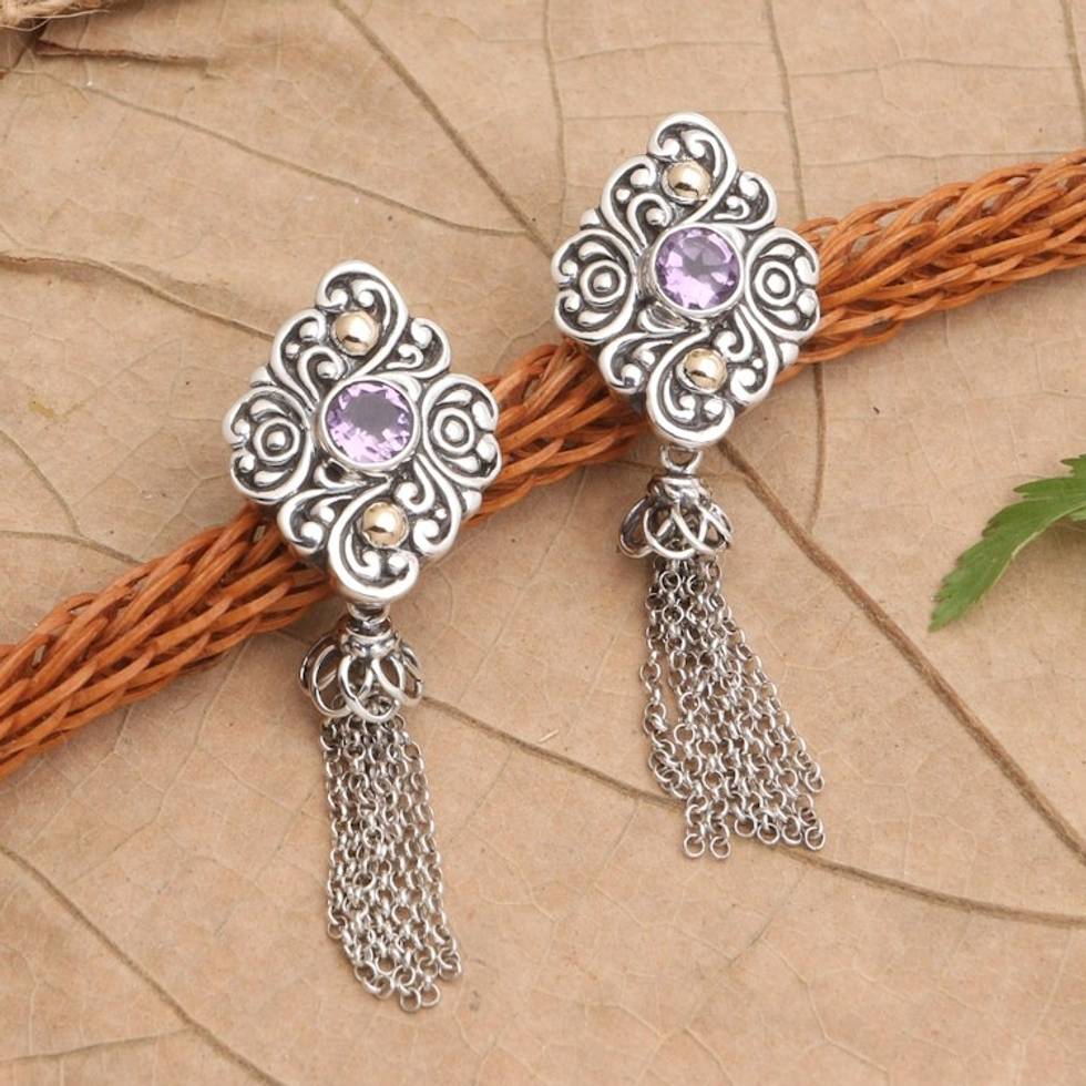 Amethyst Earrings with Gold Accents 'Perfect Swing' Item ID: 2671747826
