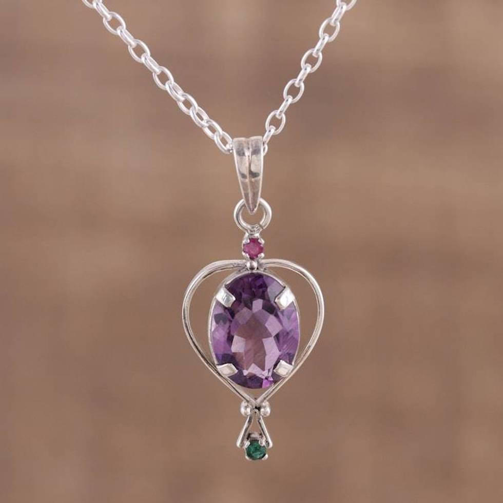 Amethyst Emerald and Ruby Pendant Necklace from India 'Sparkling Allure' Item ID: 2676664246