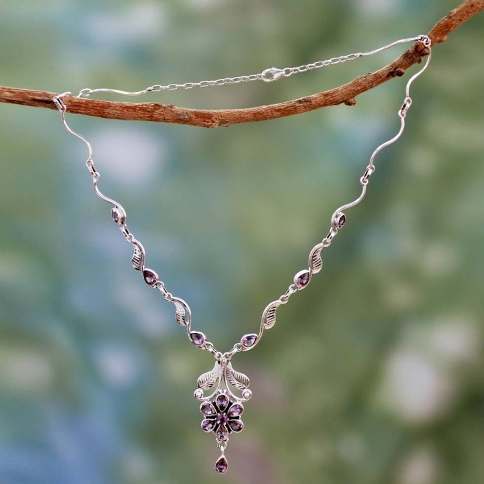 Amethyst flower necklace 'Blossoming Love' Item ID: 2671794424
