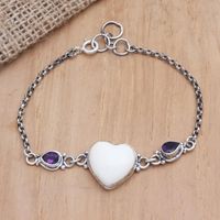 Amethyst Heart-Motif Pendant Bracelet 'Blossoming Affection' Item ID: 2671747464