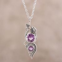 Amethyst Leaf Pendant Necklace from India 'Classic Glory' Item ID: 2671792596