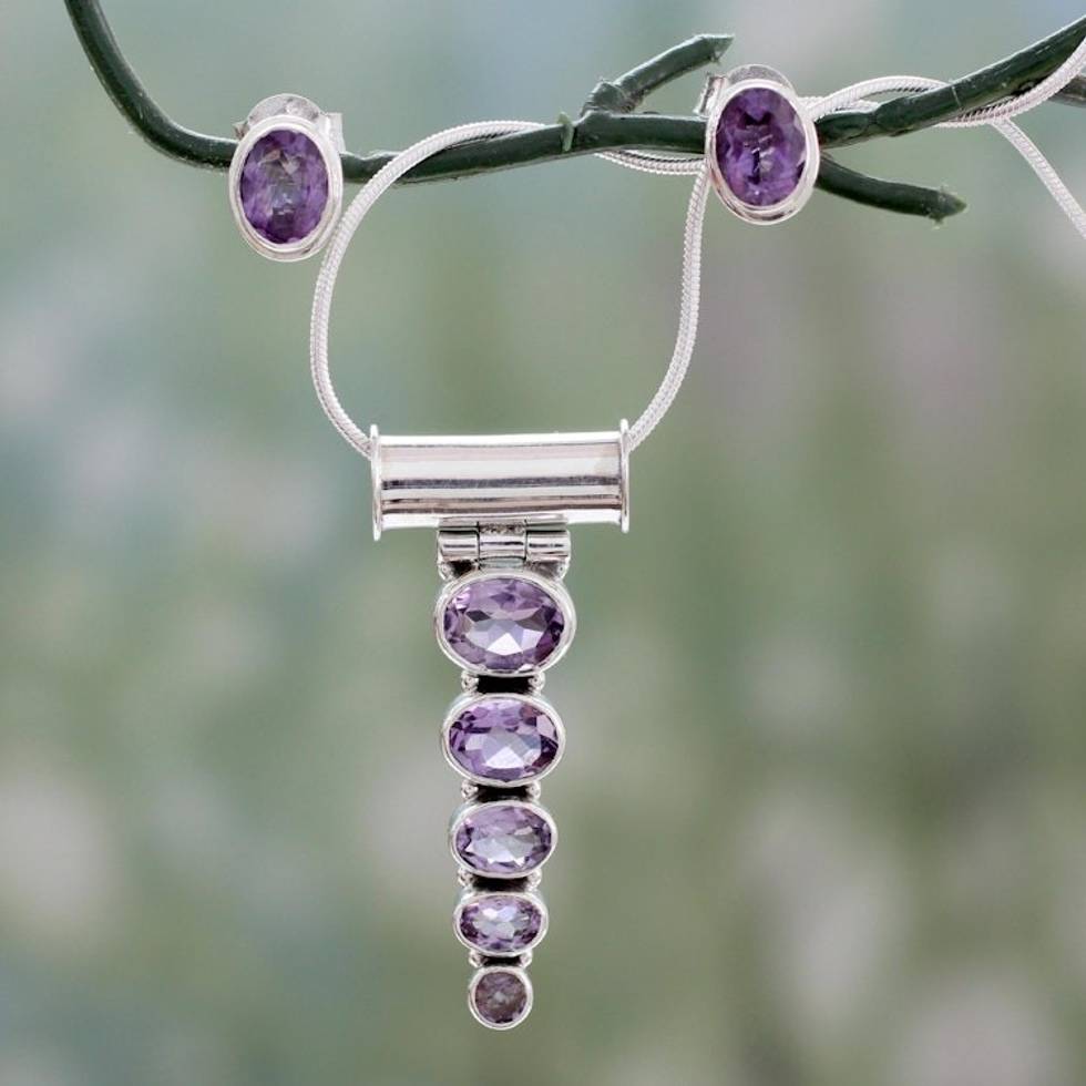 Amethyst Necklace and Earrings Jewelry Set 'Aware' Item ID: 2669925293