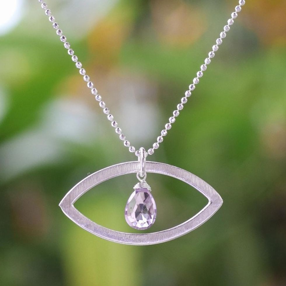 Amethyst pendant necklace 'Mystical Ellipse' Item ID: 2671803122