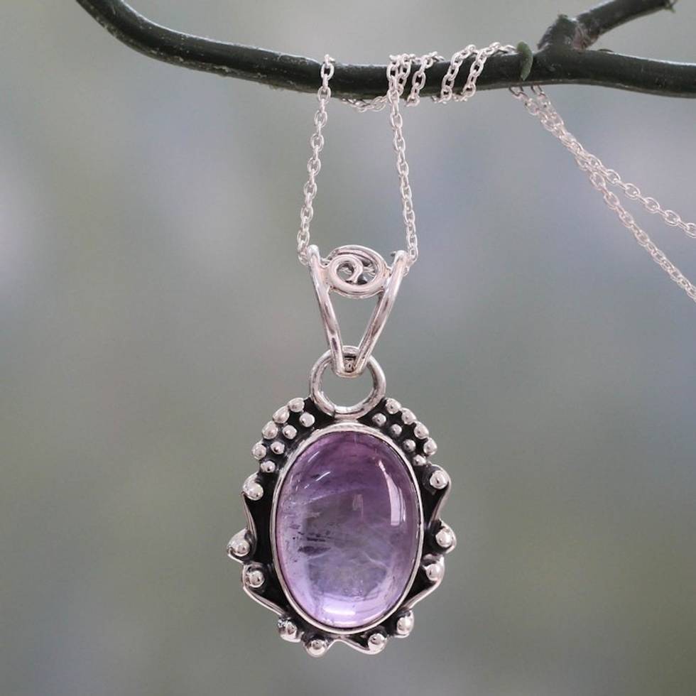 Amethyst Pendant Necklace with Polished and Oxidized Silver 'Twilight Mist' Item ID: 2671793657