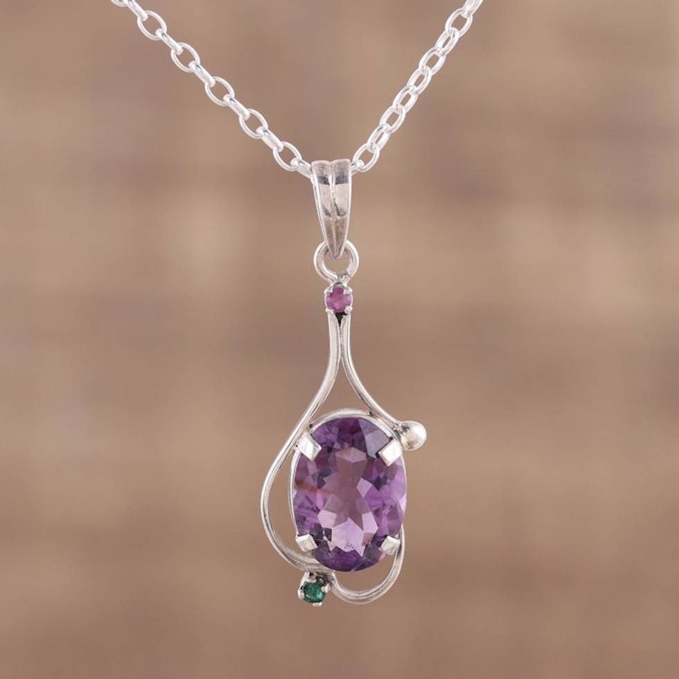 Amethyst Ruby and Emerald Pendant Necklace from India 'Alluring Glisten' Item ID: 2671619969